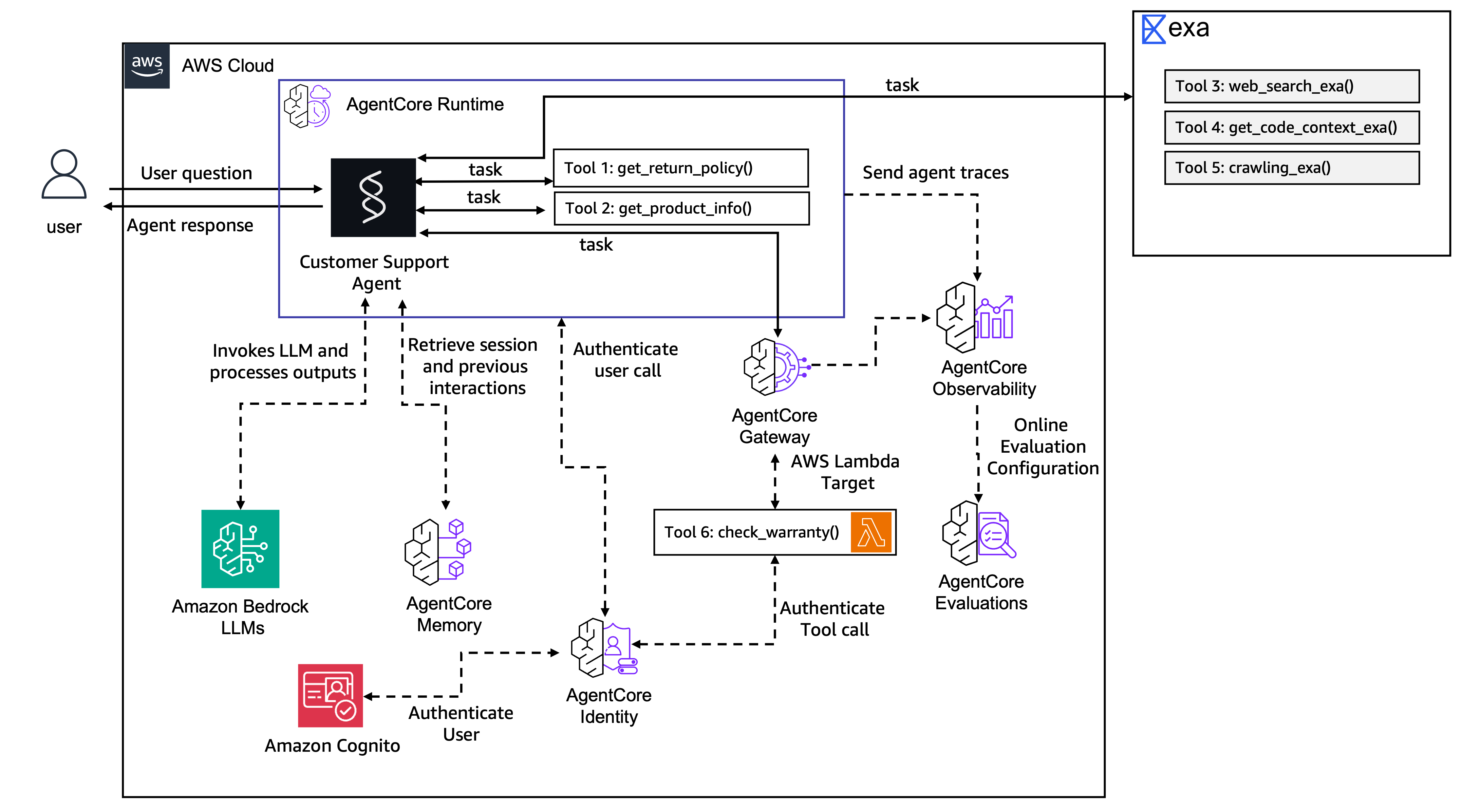 ├── Local tools: get_return_policy(), get_product_info()